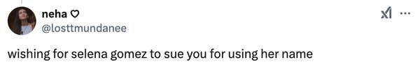 And finally, “wishing for selena gomez to sue you for using her name,” this person said.